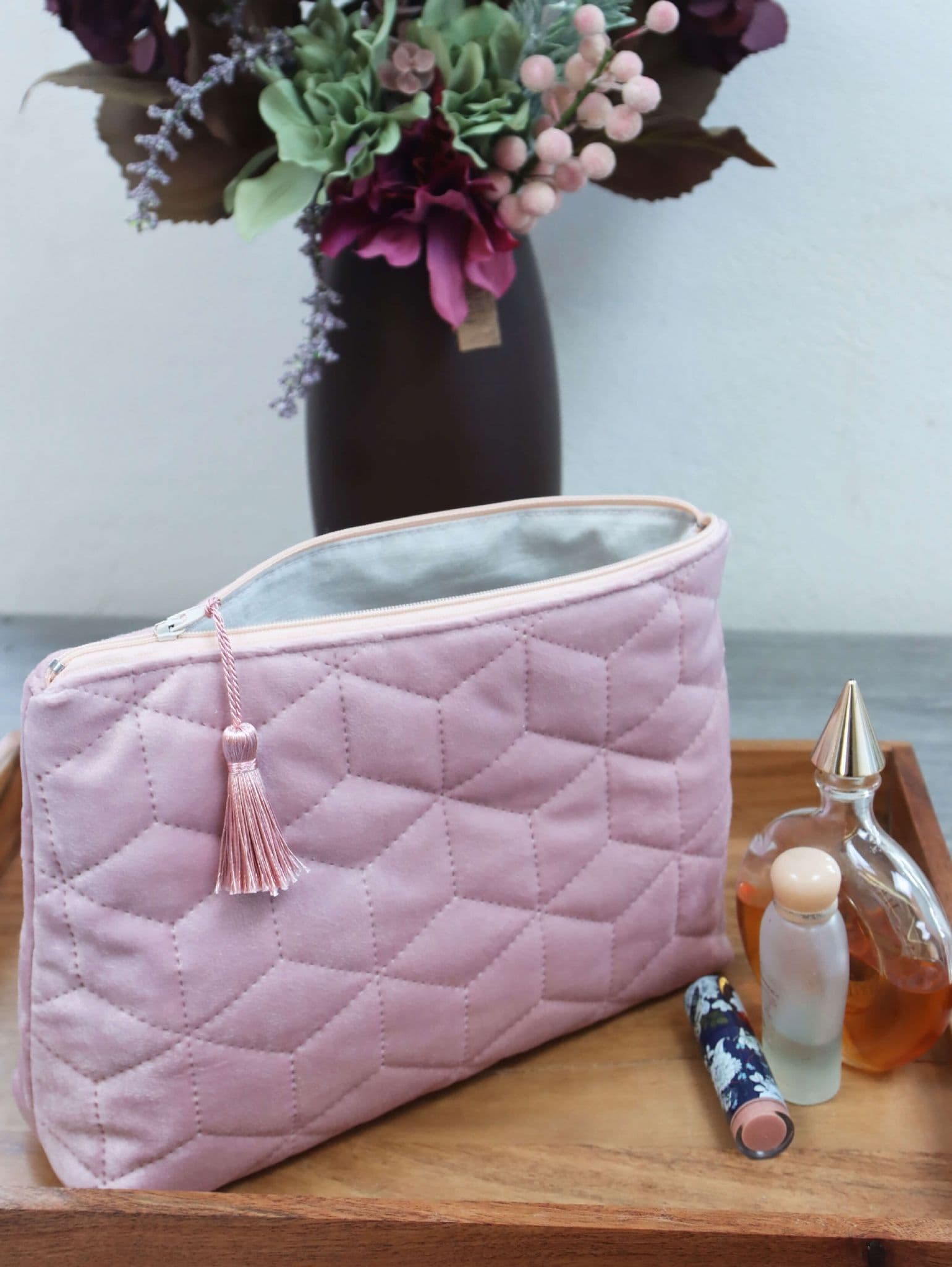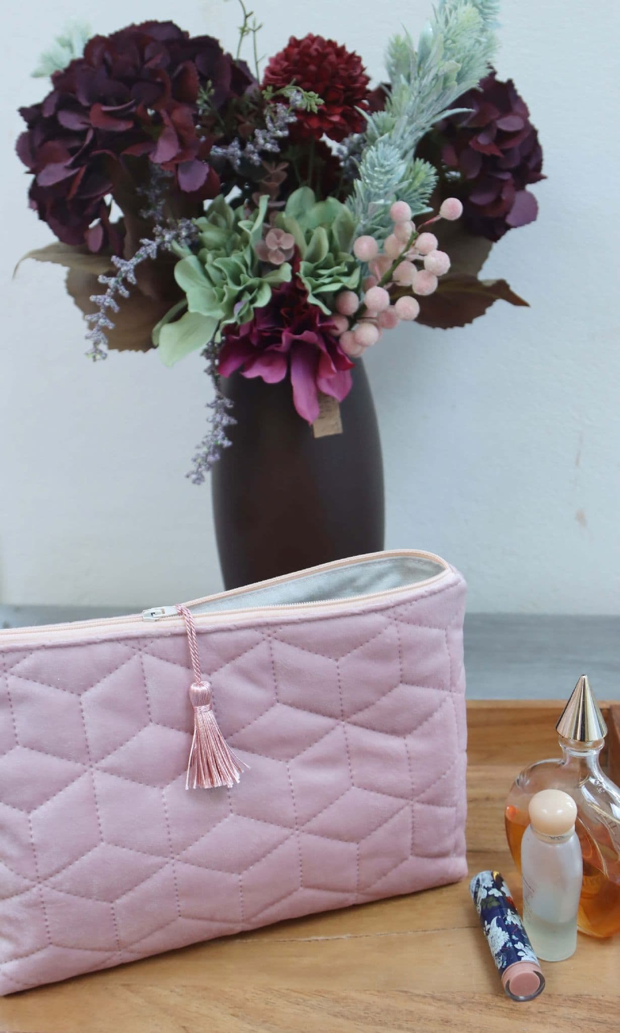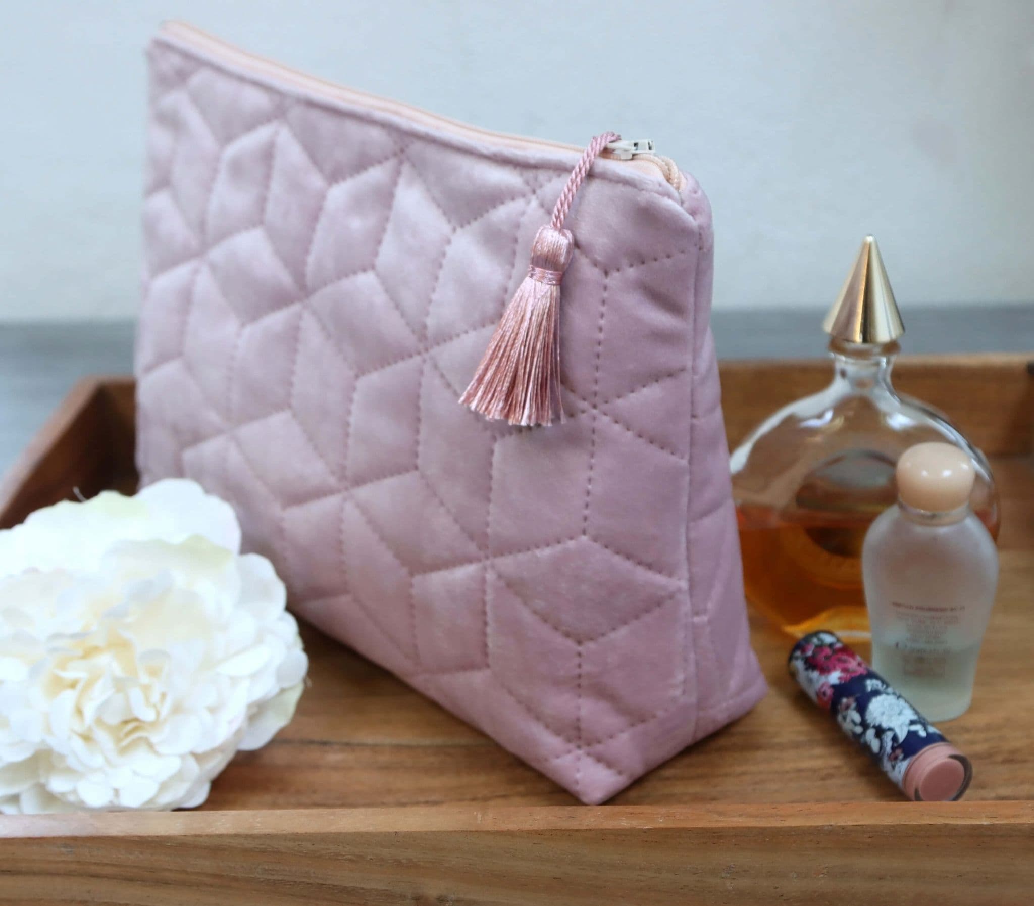 Gorgeous handmade pink velvet (velour) quilted cosmetic bag - perfect for storing make up and toiletries.